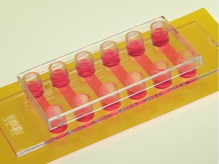用于平行流體實驗和免疫熒光的六通道載玻片,僅使用少量的試劑和培養液即可完成實驗。